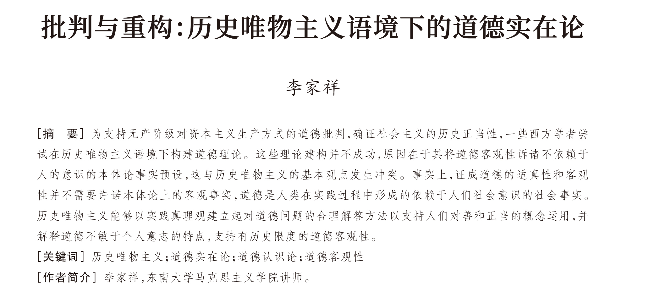 Criticism and Reconstruction:Moral Realism in the Context of Historical Materialism