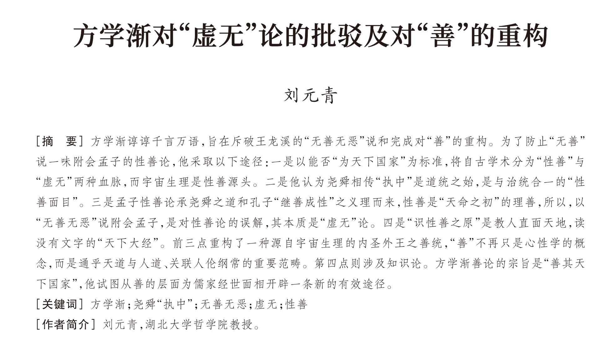Fang Xuejian’s Refutation of the“Nothingness”Theory and Reconstruction of the“Good”