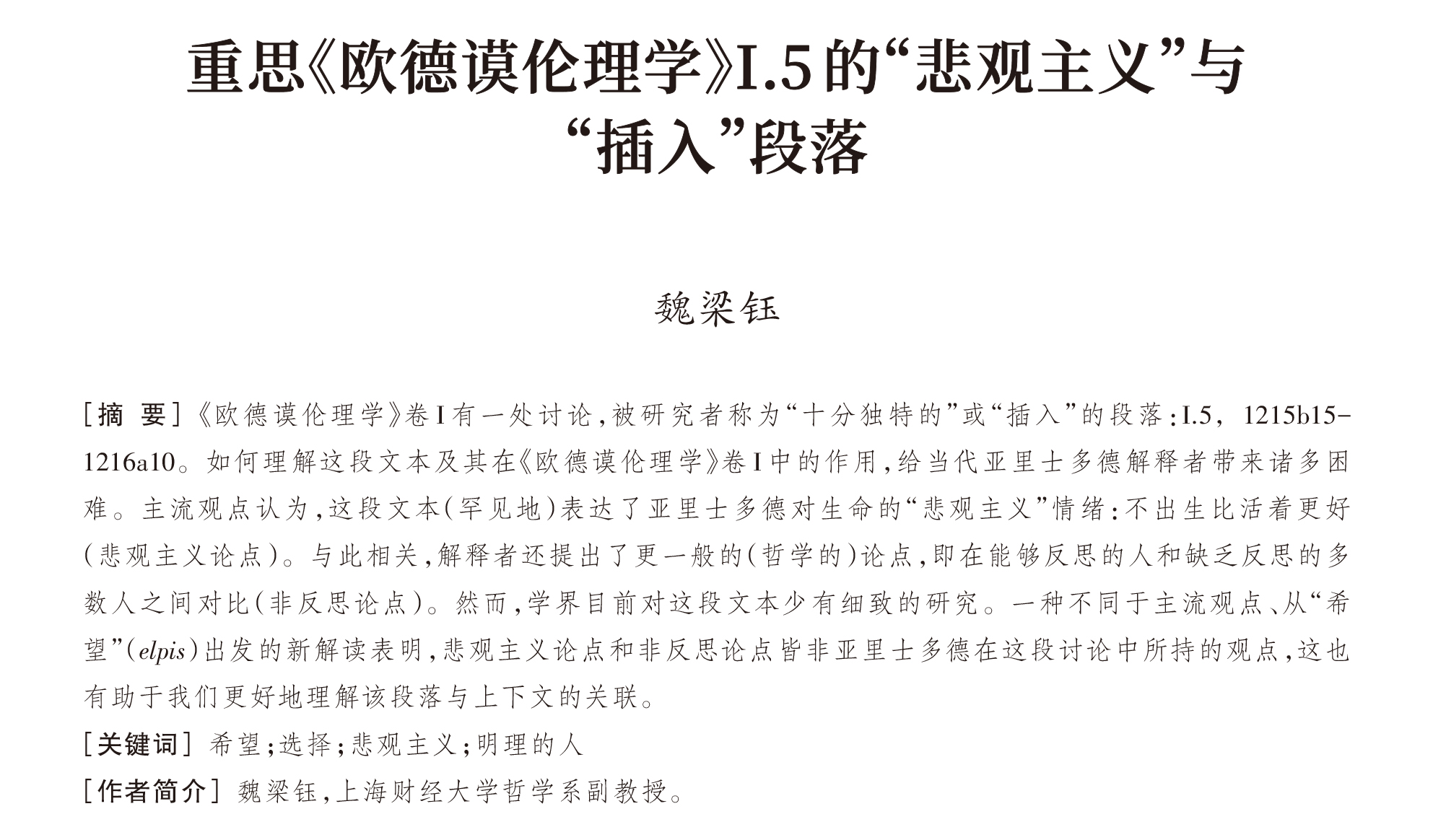 Rethinking the“Pessimism”Passage in Eudemian Ethics I.5